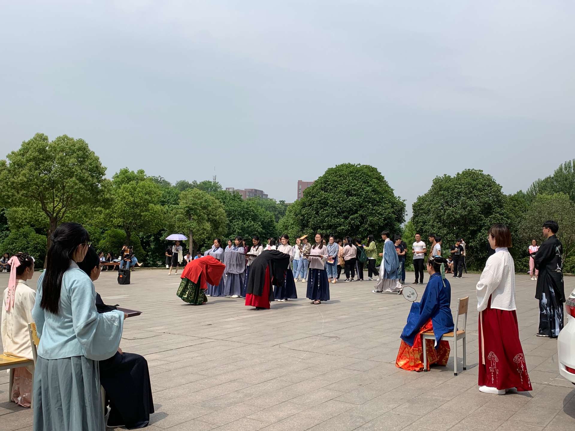 5月14日上午,社会科学学院汉风国韵社在图书馆前举行了成人礼展演活动。社会科学学院学工干事王晶、社团指导老师王燕红、辅导员刘雪、曹惠、陈功林以及部分学生代表参加此次活动。