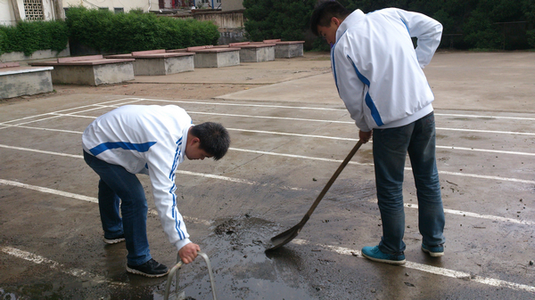 由于近段雨水较多,导致一小校园内有很多处积水,志愿者到达后,分别对教学楼周围和操场进行了卫生清扫和淤泥清理。在活动过程中,志愿者们不怕脏,不怕累,彰显了我院学子良好的奉献精神。一小学生亲切的称呼志愿者为“雷锋哥哥”、“雷锋姐姐”。经过两个多小时的努力,一小校园又恢复了干净整洁的面貌。