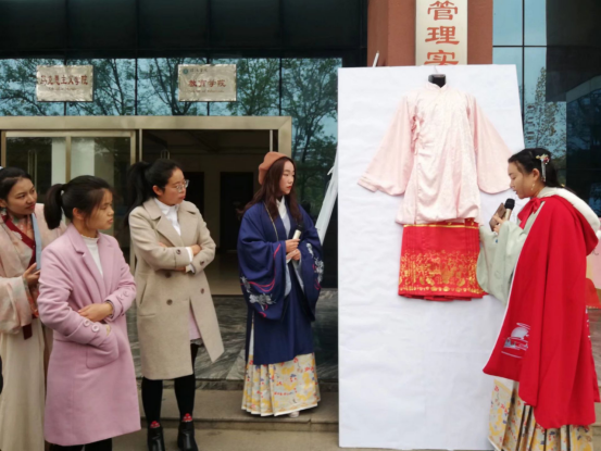 11月23日,汉风国韵社在社科楼前举办了汉服体验展演活动。社团指导老师王燕红、全体社员以及部分2019级部分学生参加了此次活动。