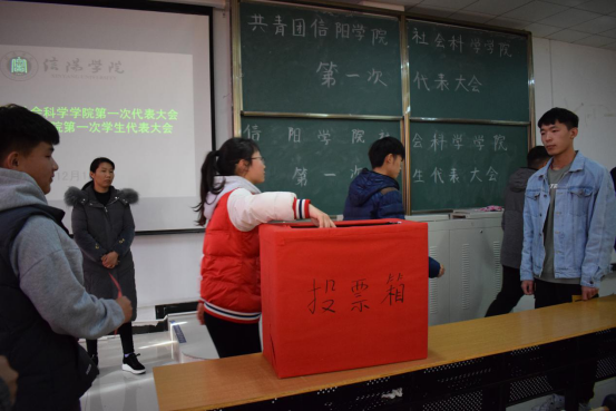曹惠向参会人员传达了《关于做好共青团信阳学院第一次代表大会暨第一次学生代表大会代表选举工作的通知》文件精神。会议由选举学代会代表和团代会代表两部分组成,大会宣读了双代会选举办法、监票组成员名单、候选人名单,秉着公平、公正、公开的原则,与会代表庄重地投下了自己的宝贵一票,最后通过无记投票,选举产生产生了10名团代表和13名学代表。