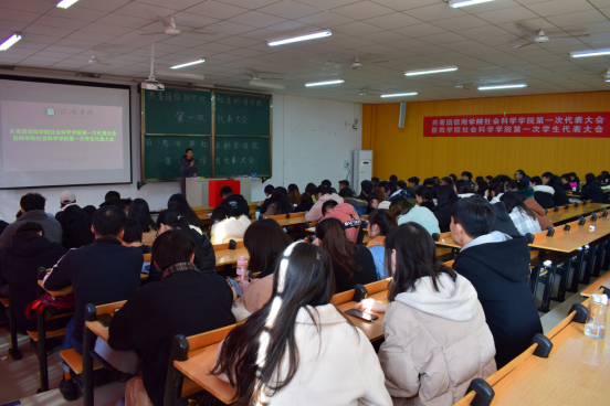 为深入贯彻落实党的十九大精神、团十八大精神,全面落实“从严治团”要求,加强和规范团内政治生活、发扬团内民主、凝聚团员青年思想意识、提升团学工作科学化水平、开创团学事业新局面,社会科学学院于 12月 11日中午在社科楼219教室召开共青团社会科学学院第一次代表大会暨第一次学生代表大会。党总支副书记胡志国、团总支书记曹惠、马克思主义学院教师朱新荣博士、以及各年级学生干部、普通团员和学生代表参加了本次会议。