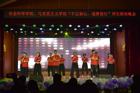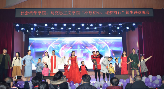 晚会结束后,所有演出人员在舞台上与领导老师们合影留念。此次师生联欢晚会不仅给大家带来了欢声笑语,也充分展示了我院大学生昂扬向上、朝气蓬勃的精神风貌。回首2019年,社会科学学院在学校正确领导下,取得了可喜成绩。展望2020年,社会科学学院将不忘初心,牢记使命,砥砺奋斗,筑梦前行,再创新的辉煌。