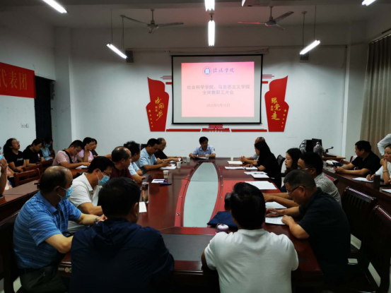 9月15日下午,社会科学学院在社科楼107召开全体教职工会议,校党委专职副书记施昌海、党委宣传部负责人李肖利莅临指导,社会科学学院全体教职工参会。会议由学院党总支副书记胡志国主持。