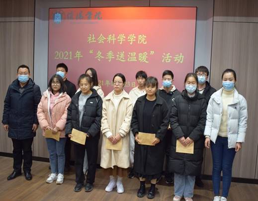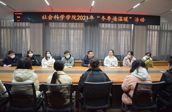 为落实学校对家庭经济困难学生的关怀,确保家庭经济困难学生度过一个温暖祥和的寒冬,社会科学学院于12月23日在社科楼109会议室举行“冬季送温暖”活动。党总支副书记胡志国、团总支书薛姗姗、全体辅导员与学生代表参加此次活动。