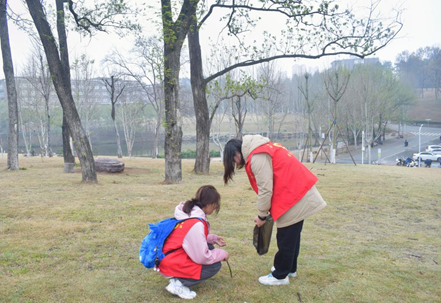 3月21日中午,社会科学学院团总支组织青校第27期同学在社科楼西侧斜坡开展志愿服务活动。