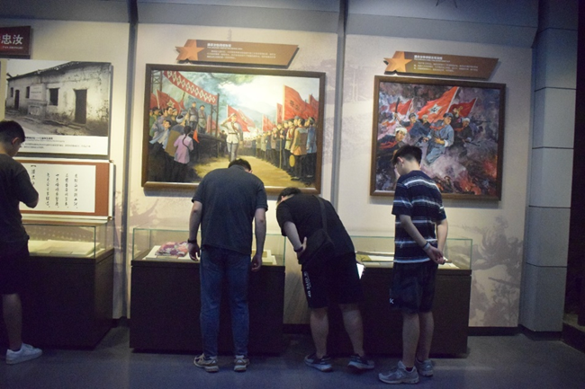寻迹团成员在新县汇合后,首先去到新县鄂豫皖苏区首府烈士陵园,战争时期党员们的鲜活事迹感染着大家,他们用自己的青春和热血谱写了一曲曲时代的凯歌。中国共产党人坚定的理想信念在烈士陵园参观者的心中默默传递,成员们从烈士的足迹中找到了中国共产党领导中国人民走向胜利的原因。
