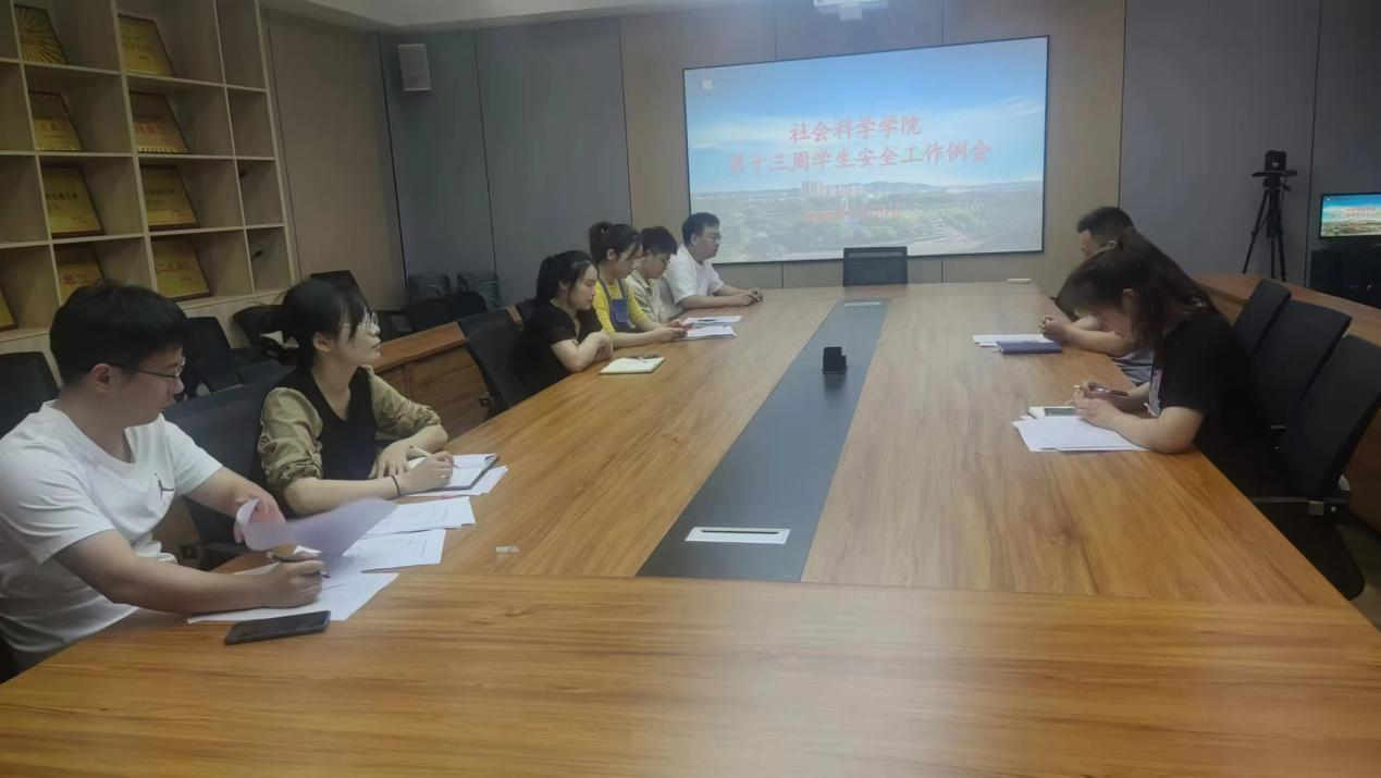 5月20日下午,社会科学学院在社科楼419会议室召开第十三周学生安全工作例会。党总支副书记胡志国、学工干事陈苗苗和全体辅导员参加了本次会议。会议由陈苗苗主持。