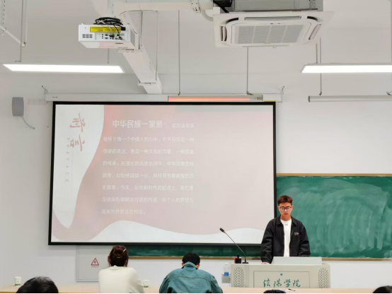 比赛初始,来自社会科学学院的30余名优秀选手依次登台亮相展现风采。在比赛过程中,他们紧扣演讲主题,结合自身实际,从历史的深度出发,用当下的成就佐证,结合视频、PPT等展开演讲,用饱满的热情、生动的语言深入浅出地讲述了中华民族一家亲的动人故事,充分弘扬了民族团结进步的主旋律,表达了对实现中华民族伟大复兴中国梦的热切期盼,也博得了评委老师和同学们的阵阵掌声。