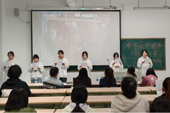 11月5日,社会科学学院在南湖校区教二楼306教室举办中华红色经典诵读比赛。本次比赛的评委分别由学工干事陈苗苗、团总支书记张雪梅、辅导员鲁晨龙、张傲雪、阚青担任。