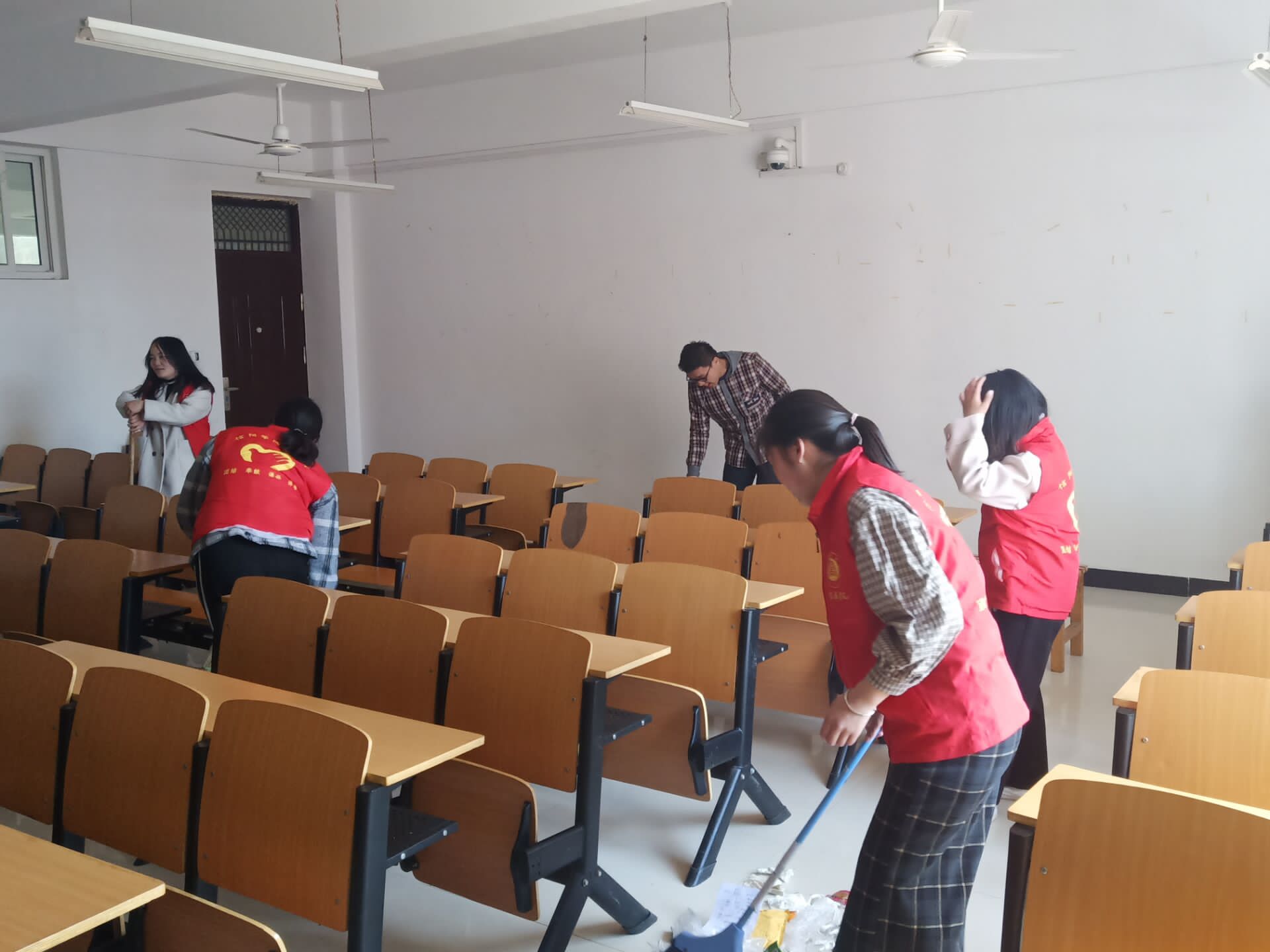 3月12日中午,为弘扬“奉献、友爱”的志愿者精神,把雷锋精神和志愿者精神散播到校园的每个角落,社会科学学院志愿服务队联合青校学员对社科楼教室开展了大扫除的活动。