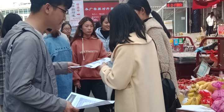 3月15日,风和日丽,春意盎然。在国际消费者权益日来临之际,由社会科学学院主办、法律爱好者协会承办的,以“增强维权意识,维护合法权益,共建和谐校园”为主题的普法活动在大学生社团活动中心举办。法律爱好者协会指导老师胡晶和陈功林老师分别带领学生在校内外两个普法点进行普法宣传活动。