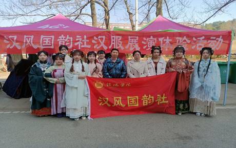 幽幽千年,熠熠华服,锦绣中华,盛世霓裳。本次社团本着继承传统文化,发扬民族精神的理念,通过体验中华民族传统服饰汉服之美,增强大众的民族认同感以及对传统文化的关注。12月5日 ,汉风国韵社在社科楼前举办汉服体验日如约而至,盛装开启!本次社团活动由汉风国韵社社长赵璐瑶主持,特邀社团指导老师王燕红老师莅临现场指导,邀请了全体社员、各兄弟社团代表参与了本次活动。