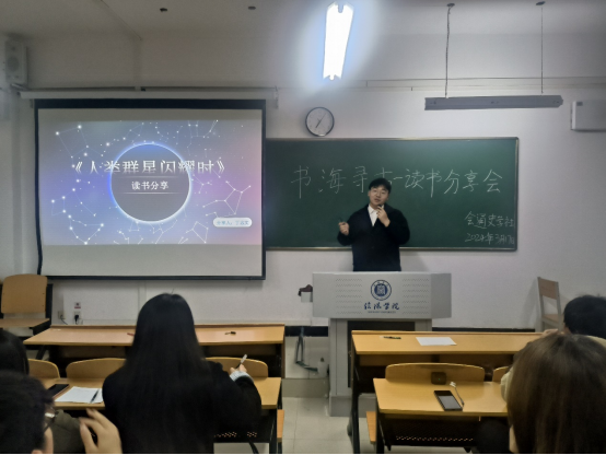 3月17日晚,由社会科学学院主办、会通史学社承办的“书海寻古—读书分享会”在社科楼401教室成功举办。本次分享会以传播历史文化知识,提升人文素养为主旨,吸引了众多同学参与,效果良好。