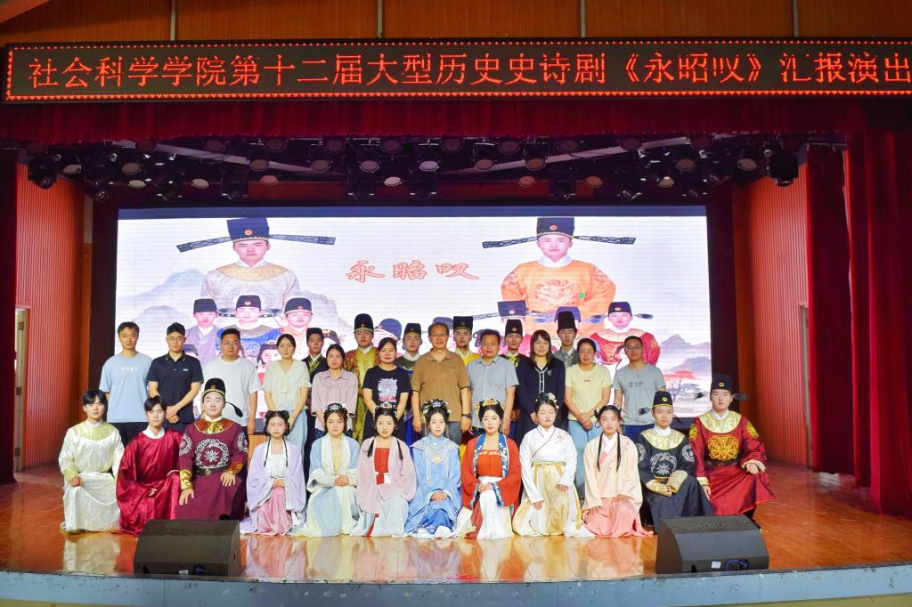 5月14日下午,由校团委和社会科学学院主办、会通史学社承办的第十二届大型历史史诗剧《永昭叹》在大学生活动中心精彩上演。社会科学学院名誉院长、党总支书记胡志国和学院部分师生到场观看。
