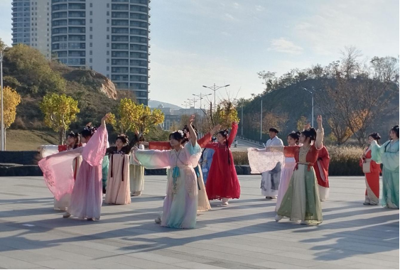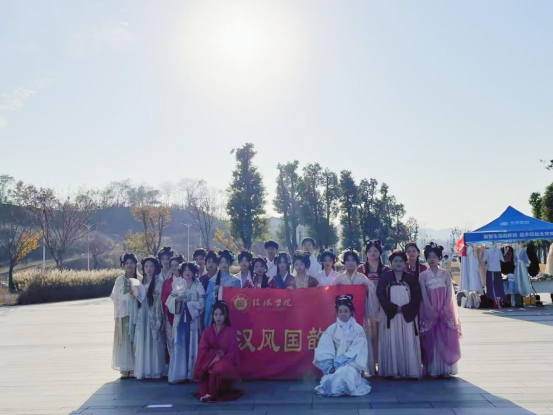中国有礼仪之大,故称夏;有服章之美,谓之华。华,是一种气度,一种民族气质和民族精神,是一个人,一件深衣,一份信仰。汉之古朴,唐之飘逸,宋之淡雅,明之端庄,这一段段衣物之上的美丽,是对天地的敬重,亦是对生活的感悟。2024年11月30日,汉风国韵社在南湖校区迎新广场举办了汉服体验展演活动。该社秉承弘扬我国优秀传统文化的宗旨,借“汉服体验展演”的活动形式,向大家普及汉服知识,增加大家对中国传统服饰的了解,树立文化自信,更好传承中华优秀传统文化。