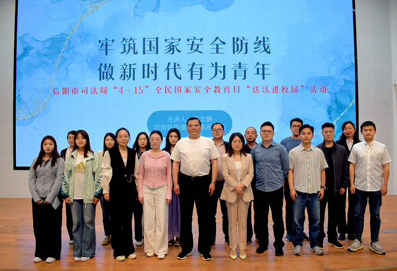 为增强全民国家安全意识,强化在校学生“国家安全人人有责”的使命担当意识,由信阳学院社会科学学院主办、法律爱好者协会协办的国家安全教育主题讲座于4月15日在教二楼117室开展。本次讲座邀请了信阳市浉河区司法局苏鑫科长以及司法局公证处、机关党委等部门负责人及13名专家人员参加。讲座由帆恒律师事务所张文静主任主讲,法学教研室胡晶老师主持。本次活动到会师生350余人。