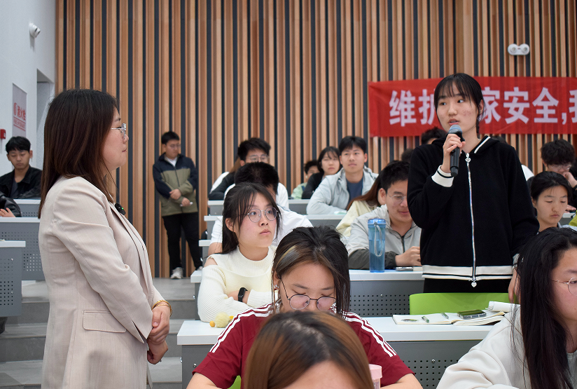 在双向互动答疑环节,同学们就张文静律师提出的“AI技术是否威胁国家安全”等社会热点问题积极回答,积极表达自己对国家安全问题的关注,并向张文静律师就“当代学生如何维护国家安全”等问题进行提问,对国家安全保护相关问题进行探讨,现场气氛热烈。同学们纷纷表示,通过此次讲座,对国家安全知识有了更深刻的理解,维护国家安全的责任感也进一步增强。
