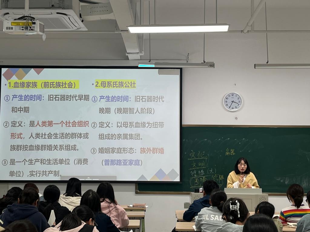 厉芳艺老师:专业素养扎实,教学逻辑清晰。授课时,先带领学生回顾上节课知识,帮助学生巩固旧知、建立知识联系。在讲授原始社会部分基本知识时,采用简单易懂的讲述方式,清晰讲解原始社会不同时期的特点与婚姻方式,使抽象知识变得易于理解。课堂氛围轻松愉快,学生参与度较高,课堂效率较高。