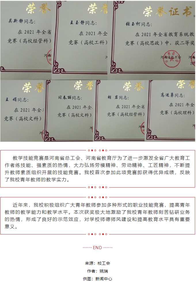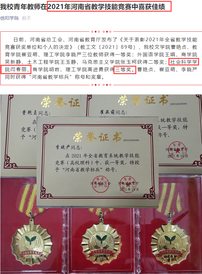 社会科学学院青年教师闫春丽在2021年河南省教学技能竞赛中喜获佳绩