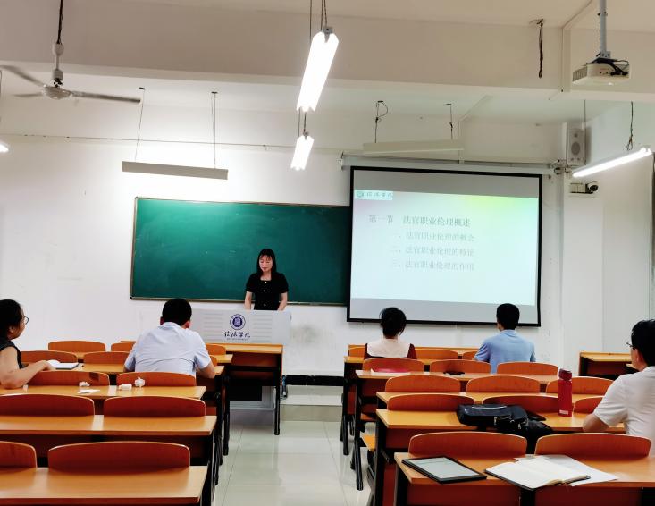 其次,程俊丽老师本次教学素质提升内容是《法律职业伦理》。程俊丽老师先以三个案例形式导入,启发学生进行思考,并介绍本节课的重难点,然后围绕法官职业伦理的概念、特征以及作用进行详细讲解,授课中采用了讲授法、案例分析法、分组讨论法等多种方法进行互动。最后,以一道案例思考题结束本次教学素质提升内容。程老师讲课结束后,周占生教授、胡晶、张奎老师进行了课后点评,勉励青年教师在授课的过程中,可以以某个具有特色的知识点作为本节课的亮点,更能推动良好教学效果的实现,同时也要注意减少“口头禅”。