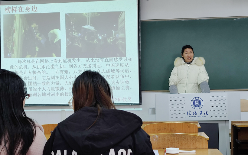 第二位示范者是曹惠,她的示范课程是《中国古代史》(一)。曹老师讲课的主题是战国的士人。首先,她对战国士人阶级的产生,士人的活动与影响进行了简要介绍。其次,她以战国士人与当今大学生进行比较,由此转入大学生的责任与担当上来。然后,她以信阳学院学生为例,讲述同学们在疫情中、在暴风雨里,奋不顾身,勇于担当的精神。最后,她以习近平总书记的嘱托做结语,号召青年要立鸿鹄志、要探索求真、要做奋斗者。