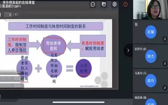 4月29日下午第5节,法学教研室的李伶俐副教授的观摩课在钉钉群线上开展,法学教研室骨干教师胡晶带领全体无课的年青教师参加了本次观摩课的听评课活动。