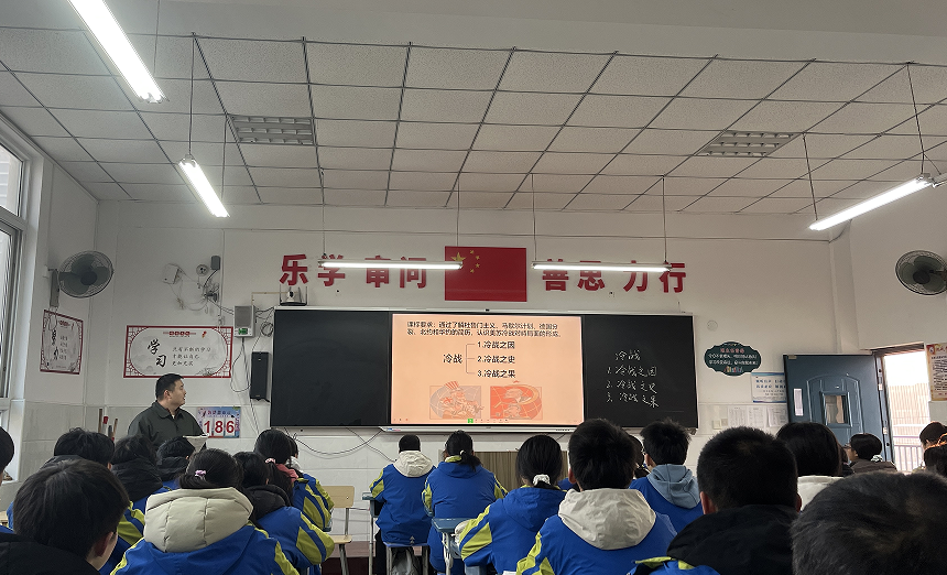 为深化历史学专业教学改革,搭建校际教学交流桥梁,助力青年教师提升教学实践能力,将先进教学理念与中学历史课堂实践深度融合,12月19日上午,社会科学学院组织青年教师刘研、孙慧君前往信阳市南湾中学开展听课研学活动,重点观摩了九年级历史《冷战》公开课。