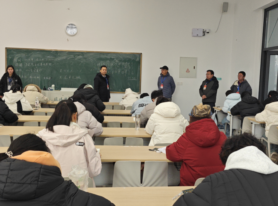 为确保期末考试工作平稳有序开展,严肃考风考纪,营造公平公正的考试环境,1月5日上午,校长助理张永志深入社会科学学院开展2025年秋季学期期末考试巡考工作。社会科学学院院长郭志祥、党总支书记胡志国、教学副院长寇博文及班子成员陪同巡考。