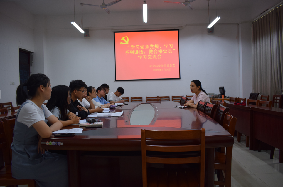 5月20日下午,社会科学学院党总支在社科楼107会议室开展“学党章党规、学系列讲话,做合格党员”学习交流会。学生党支部书记刘雪和该院2019年上半年党员发展对象参加了本次学习活动。