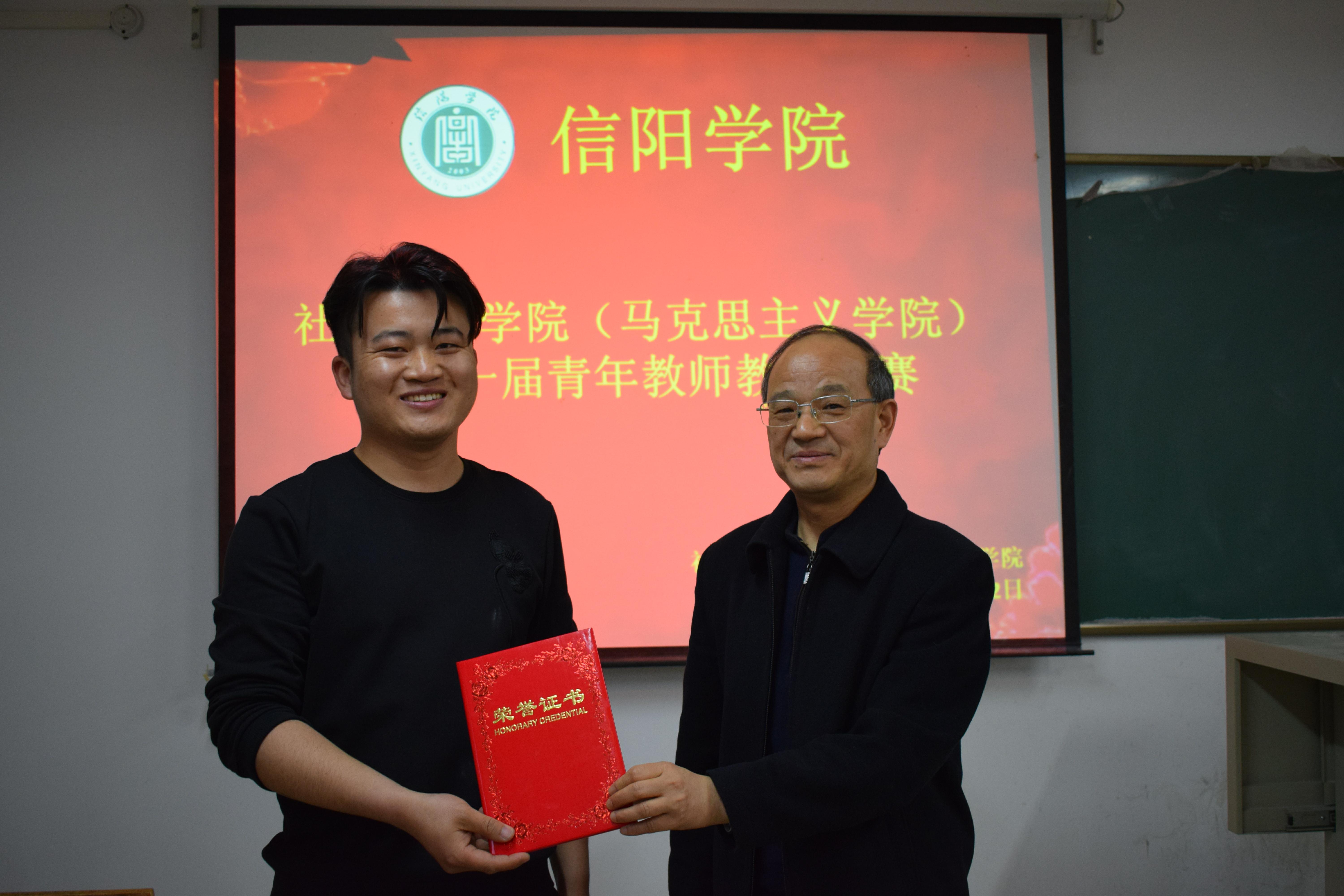 为贯彻落实《信阳学院关于开展第十一届青年教师教学技能竞赛的通知》(校教字[2019]4号),推进课堂教学的改革与创新,切实提高广大青年教师的教学水平,4月2日下午,社会科学学院(马克思主义学院)在社科楼318教室举办了青年教师教学技能竞赛。社会科学学院名誉院长,张晓东、闫振民、陈光等专家代表,教研室主任张奎、张庭军,行政干事程娇炎及17级、18级各班学习委员共同担任本次竞赛评委。教学干事王娜主持了本次比赛。