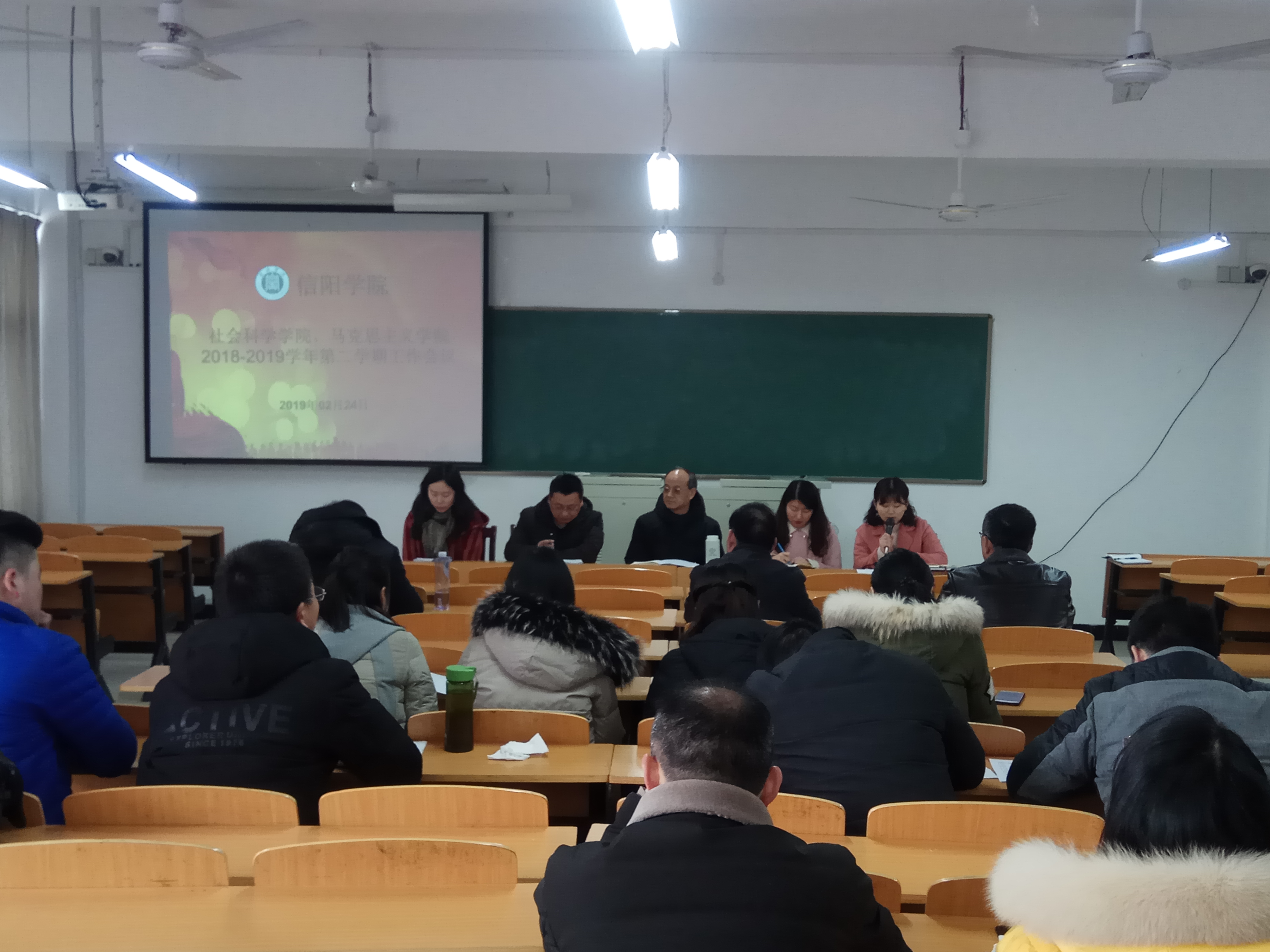 2月24日下午,社会科学学院、马克思主义学院在社科楼413教室召开2018-2019学年第二学期工作会议,学院全体教师参加。会议由胡志国主持。
