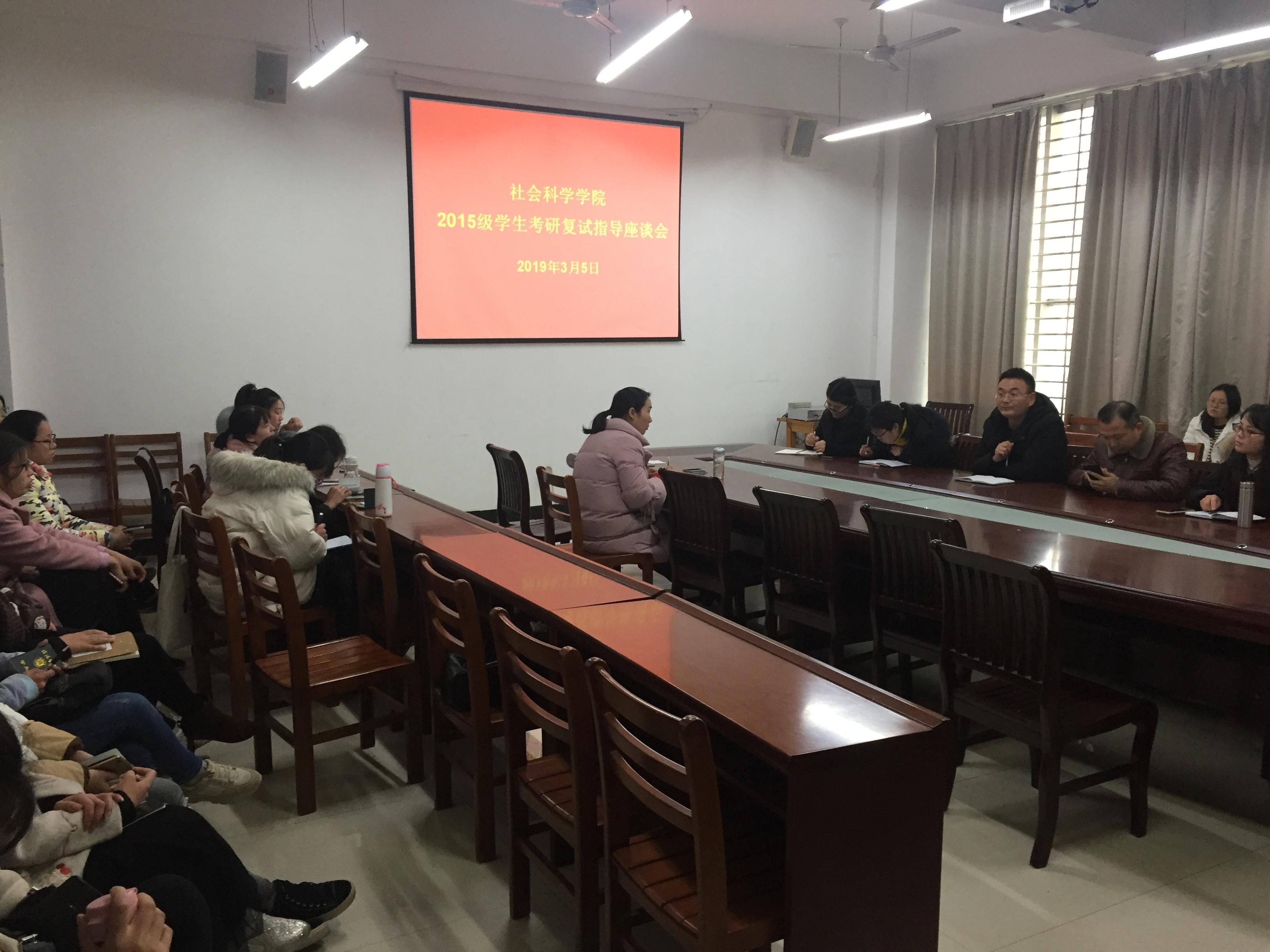 为继续做好2015级考研学生服务工作,助力毕业生圆梦考研,3月5日,社会科学学院在社科楼107会议室召开了2015级学生考研复试、调剂指导座谈会。社会科学学院行政干事程娇炎、法学教研室和历史教研室全体教师、2015级法学和历史专业全体考研学生参加了此次指导会。