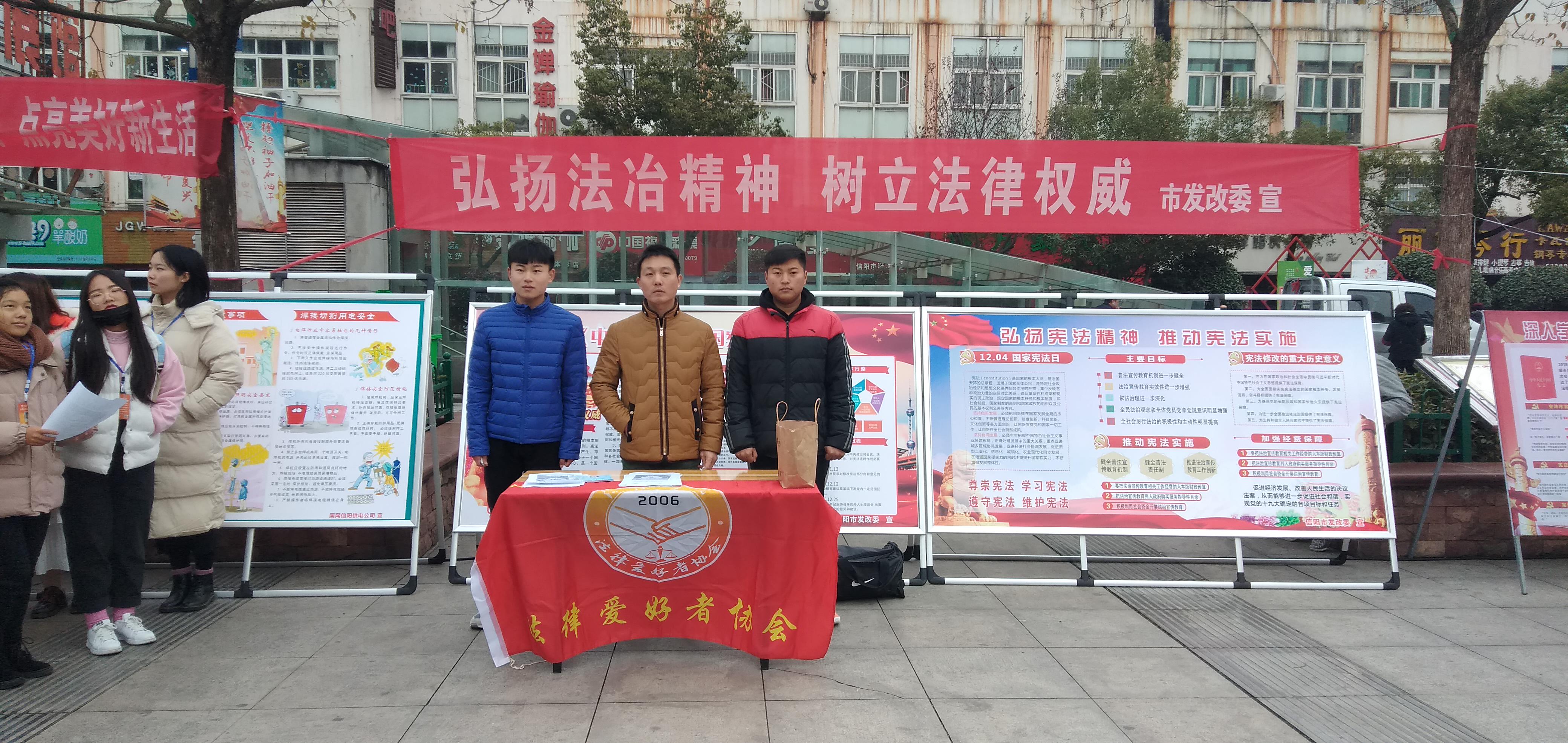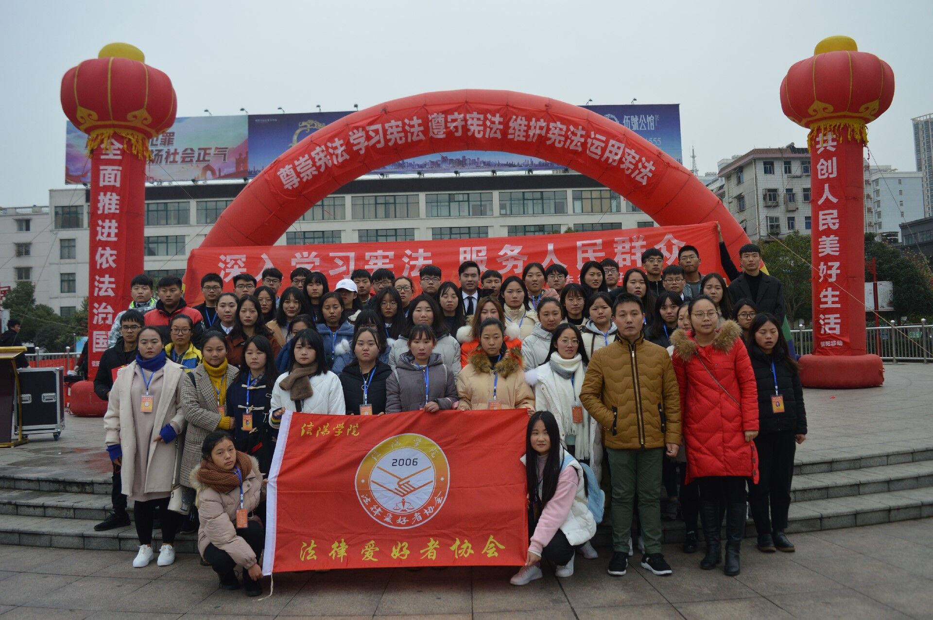2018年12月4日是全国第五个国家宪法日。由信阳市司法局主办、信阳学院法律爱好者协会承办的“尊崇宪法 学习宪法 遵守宪法 维护宪法 应用宪法”主题宪法宣传周活动在市中心体彩广场举办。信阳市政法委书记及信阳市公检法单位主要领导出席本次活动。社会科学学院行政秘书刘颖方,法律爱好者协会指导教师胡晶,辅导员陈功林、熊天玉老师应邀参加本次活动。
