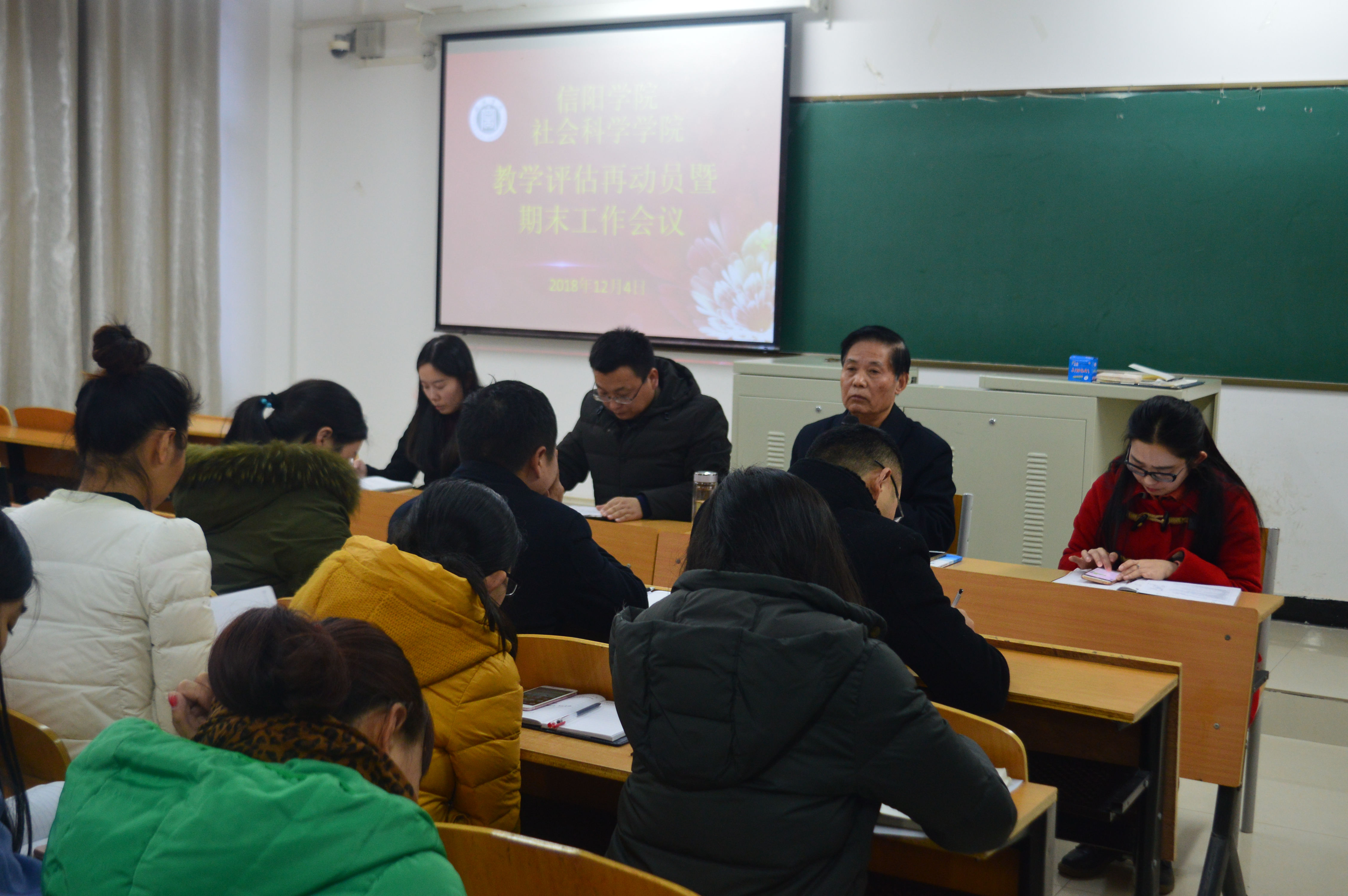 12月4日下午,社会科学学院在社科楼215教室召开教学评估再动员暨期末工作会议。该院院长陈录生教授、各位专家、全体教师参加了此次会议。会议由行政干事程娇炎主持。