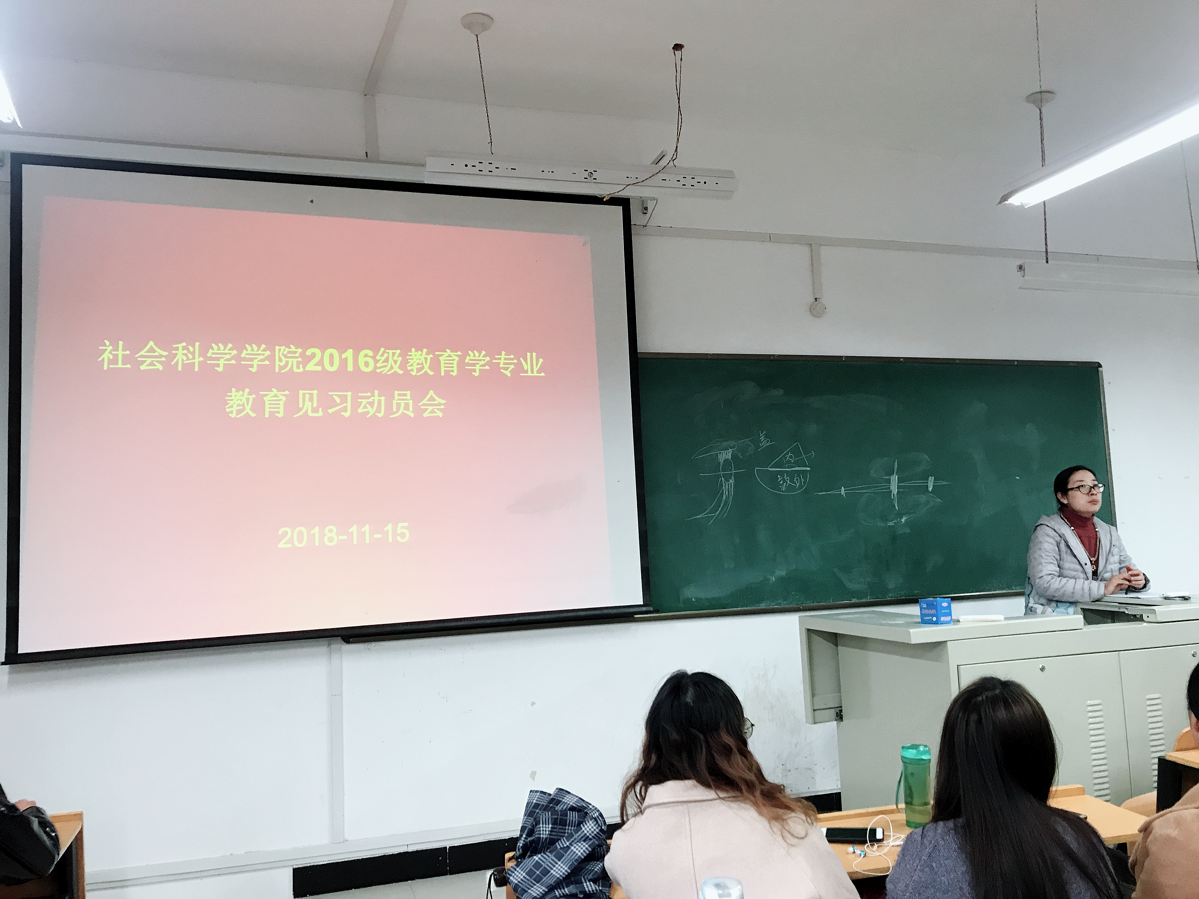 11月15日下午,社会科学学院教育学专业在社科楼216和社科楼511举行了2016级教育学专业教育见习动员会。参加动员会的有教育学教研室、小学教育教研室全体教师、教育学专业辅导员及2016级教育学专业的全体学生。此次动员会由教育学教研室主任闫霞主持。