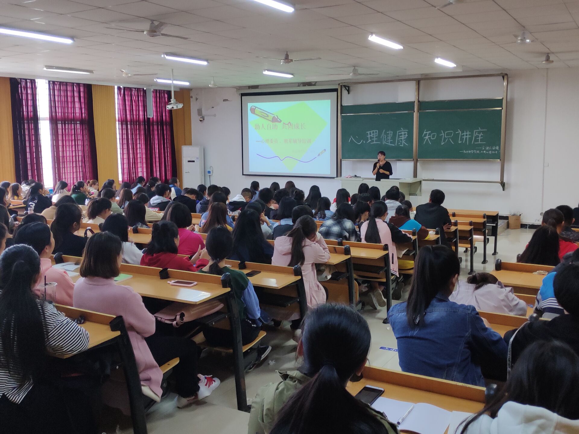 10月25日中午,社会科学学院在社科楼219教室召开“助人自助 共同成长”心理健康主题讲座,本次讲座由社会科学学院田媛老师主讲, 200余名学生干部代表参加了此次培训讲座。