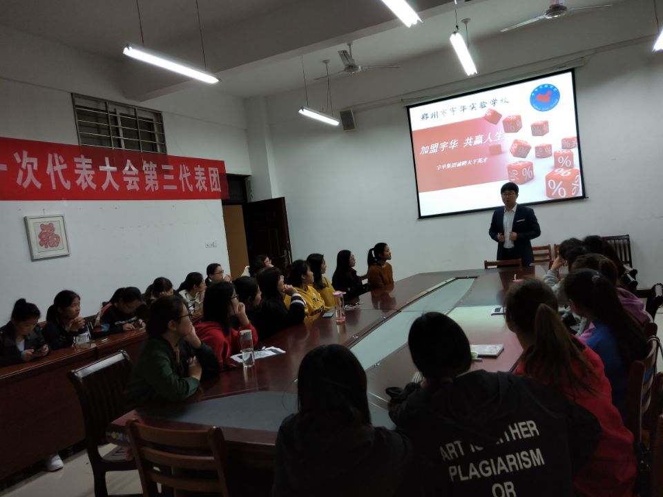 首先,宇华教育集团实验初中部主任许心思和毕业生们一起观看了集团的宣传片,接下来介绍了集团的教育资源优势及实力,并就岗前培训、薪酬待遇、员工福利、工作晋升等方面向毕业生同学们进行了详细介绍。会上,我校加入宇华教育集团的毕业生校友与同学们进行了互动,加深了同学们对该教育集团了解的及认识。招聘会结束后,宇华教育集团的老师们积极与有意向加入该教育集团的同学交流,为他们答疑解惑。
