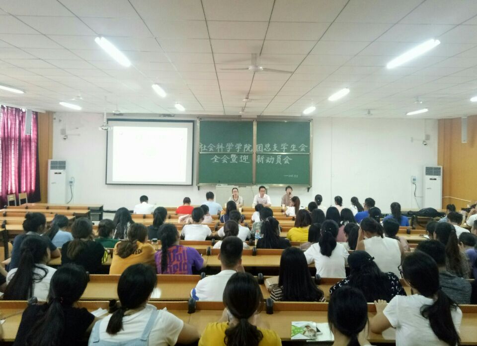 9月5日中午,社会科学学院团总支学生会全会暨迎新动员会在社科楼219举行。参加本次会议的有党总支书记李赟、学工秘书刘颖方、部分辅导员老师、全体辅导员助理、学生会成员和17级各班班委。会议由刘颖方主持。