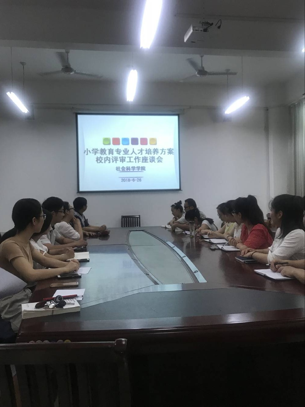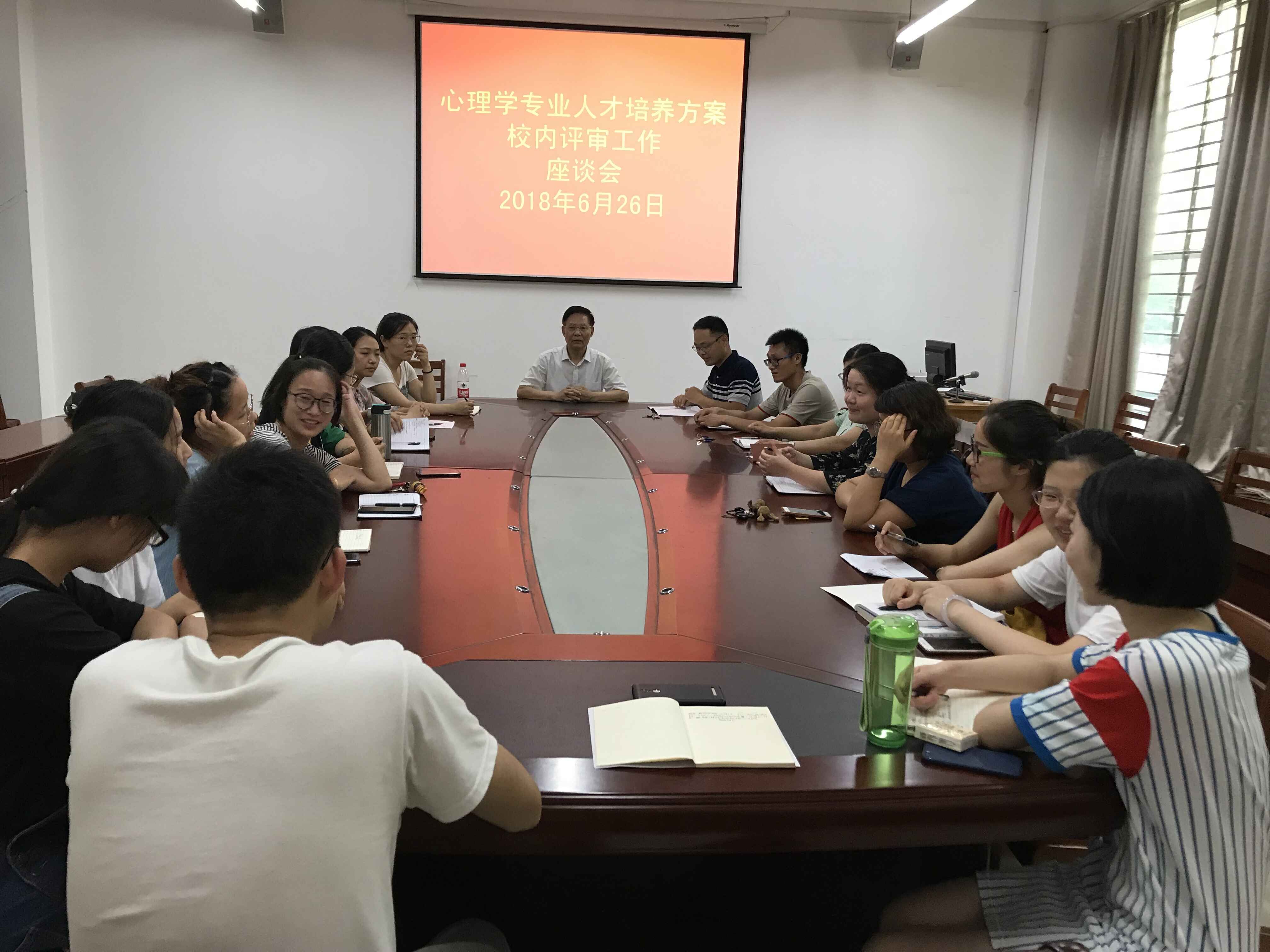 6月26日,社会科学学院在社科楼会议室及教室分别举行各专业人才培养方案校内评审工作会。社会科学学院院长陈录生教授,特聘教授韩文根、张晓东、张保同,陈杰博士分别参加心理学、教育学、小学教育、学前教育、法学、历史学本科专业人才培养方案评审,各教研室主任及相关教师,各专业学生代表参加了此次座谈会。