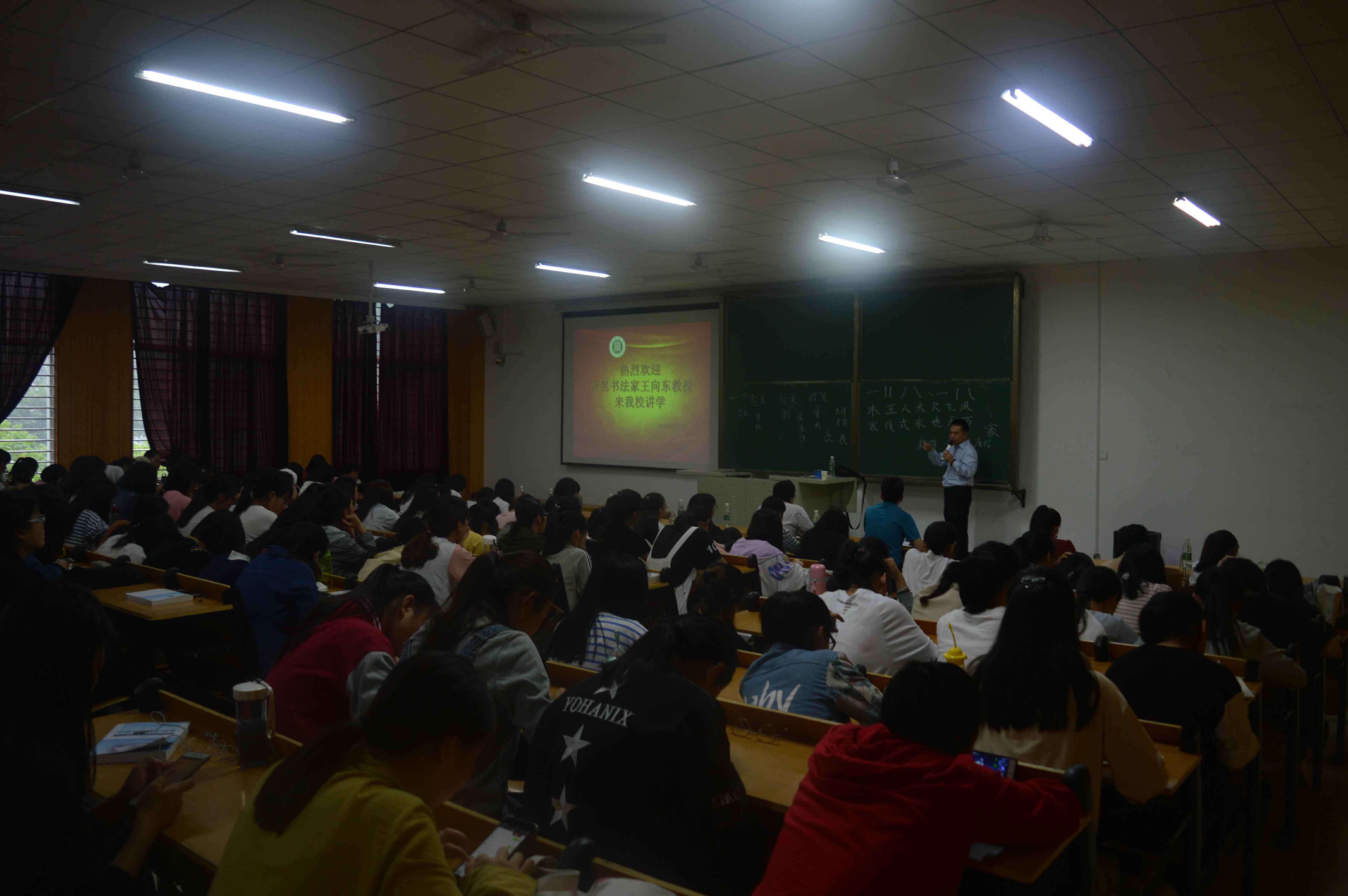 5月25日上午,应我校邀请,北京工业大学艺术设计学院书法教授、中国书法家协会会员、我校特聘教授王向东在社科楼219教室作了一场精彩的硬笔书法学术讲座。社会科学学院党总支书记李赟、院长助理胡志国及200多名师生共同聆听了本次讲座。