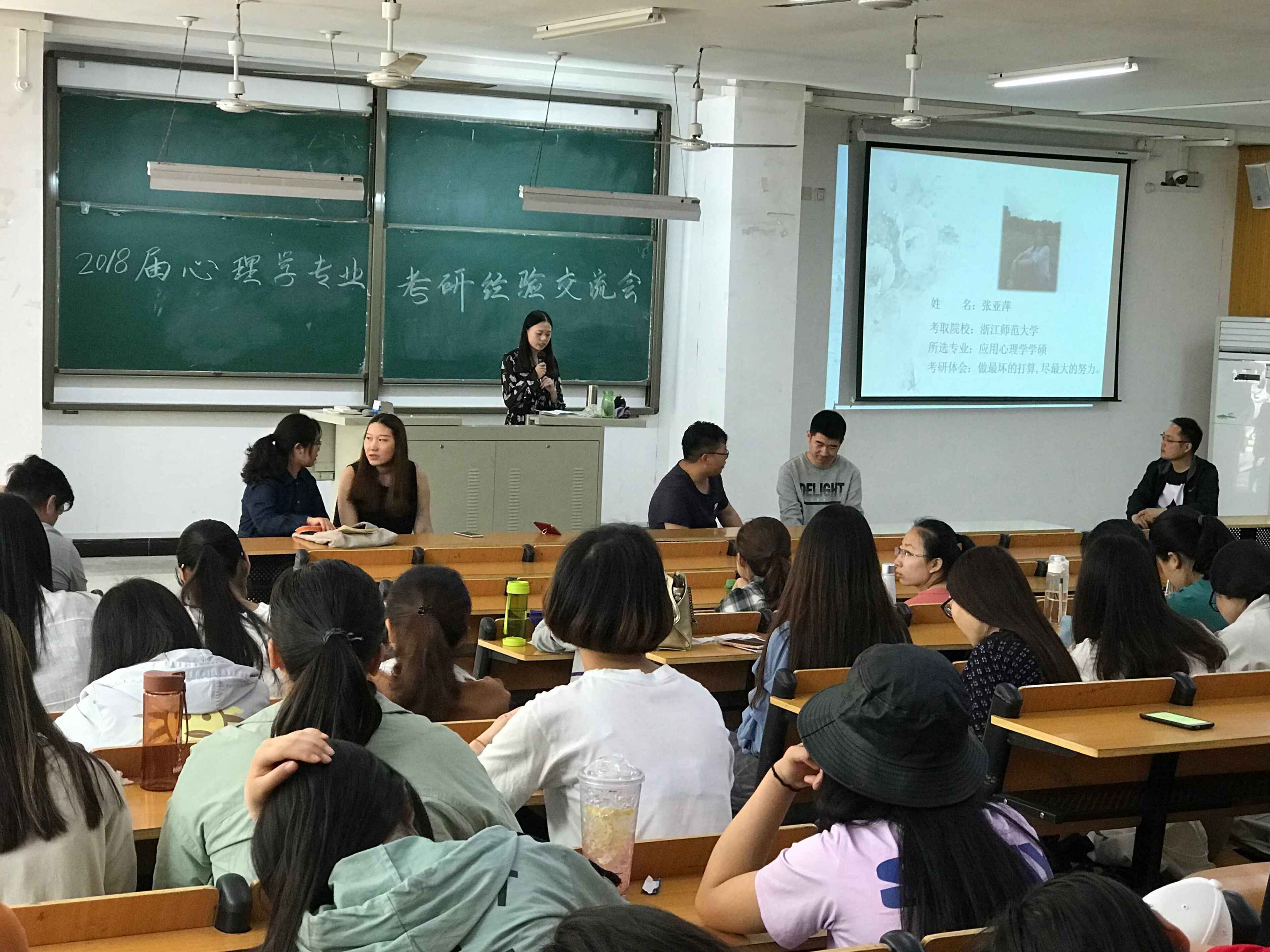 5月8日,社会科学学院心理学教研室在人文楼108举办了“2018届心理学专业考研学生经验交流会”。心理学教研室主任杨立昊、相关专业教师、考研学生代表和2015级心理学专业学生参加了此次活动。