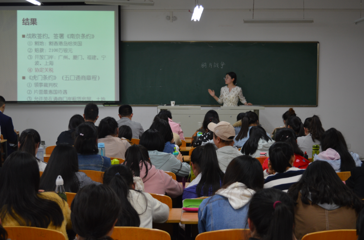 先上场的是1号选手,一号选手讲课的内容是传统诗词的回归,引用节目《经典咏流传》的方式,为讲课增添很多光彩,引得台下阵阵掌声。三号选手是来自16级教育学的谷慧珍,她带着学生们畅游数学王国,在她的讲解下,数学变得不再枯燥,而是轻松有趣。8号选手王纯青从不同的方面讲述了鸦片战争的有关内容,作为中国近代史的开端,鸦片战争的确值得我们去了解、学习。
