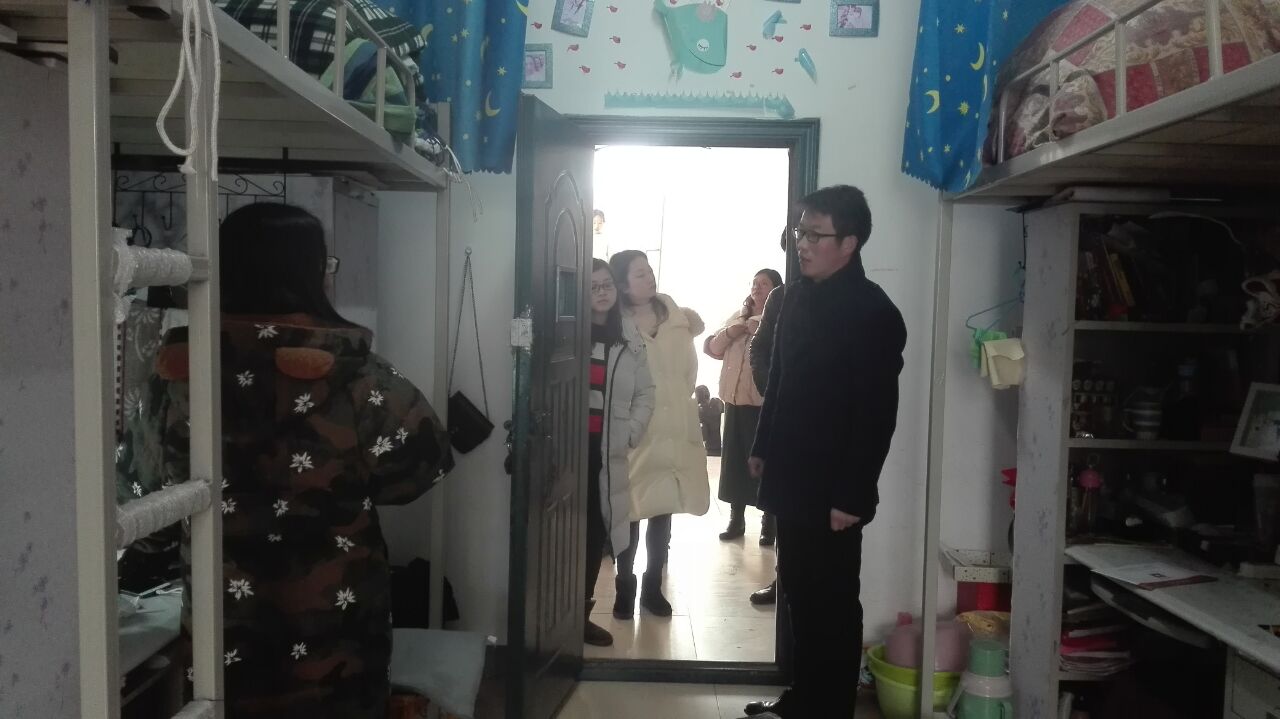 李赟带领辅导员老师逐层查看学生住宿状况,针对宿舍卫生、物品安全及防火、防盗等诸多方面排查学生宿舍中存在的安全隐患。询问学生假期离校安排,了解离校时间,叮嘱学生们回家注意交通安全,离开宿舍时一定要切断电源,关好门窗。