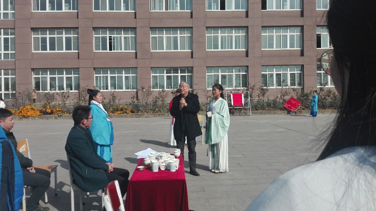 11月24日上午,社会科学学院汉风国韵社在图书馆前举行了乡射礼展演活动。科研处张天定教授、团委周扬老师、该院党总支书记李赟老师、学工秘书刘颖方老师、社团指导老师王燕红以及相关老师莅临本次活动。