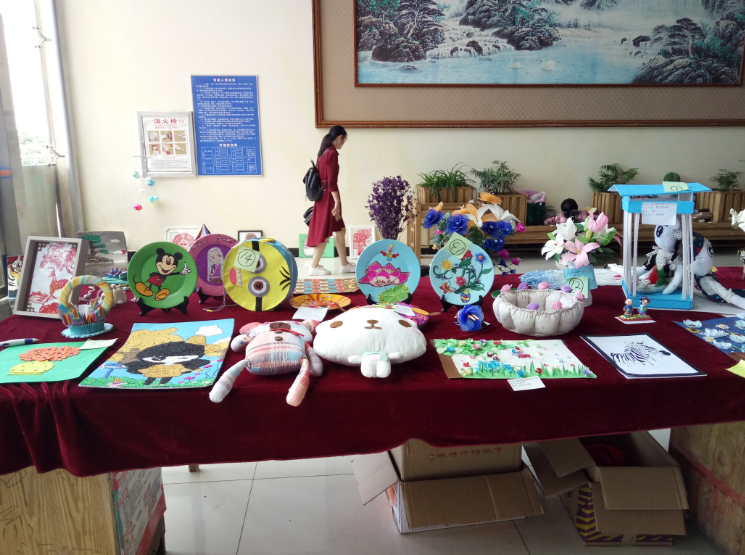 大赛的作品主要分为:丝网花、布艺、剪纸、绘画等,展台上摆放的由丝网花制作而成的孔雀令人眼前一亮,它仿佛在向人们炫耀它美丽的外衣。还有那些用刻刀刻出来的一幅幅静态图,仿佛已经历了岁月的沉淀,剩下的只有那份让人不忍打破的恬静,而那静置在盘子上的水彩画,则向人们展示了别样的画卷。
