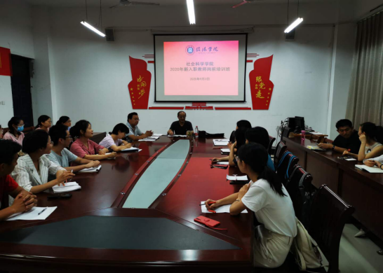 为适应我校快速发展的新形势和面临教育部合格评估的新任务,社会科学学院今年共有20位青年硕士、博士入职。为帮助他们尽快熟悉环境并适任岗位要求,9月3日至4日,社会科学学院在社科楼107会议室举办了2020年新入职教师岗前培训班,全体领导班子成员、教研室主任和全体新入职教师参加,培训由该院党总支副书记胡志国主持。