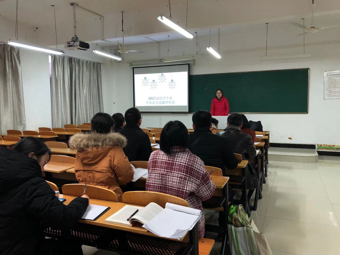依据《信阳学院2021届毕业论文指导进程安排》,2020年12月1日下午,法学专业教研室在社科楼415召开了2021届本科毕业论文选题评审会。