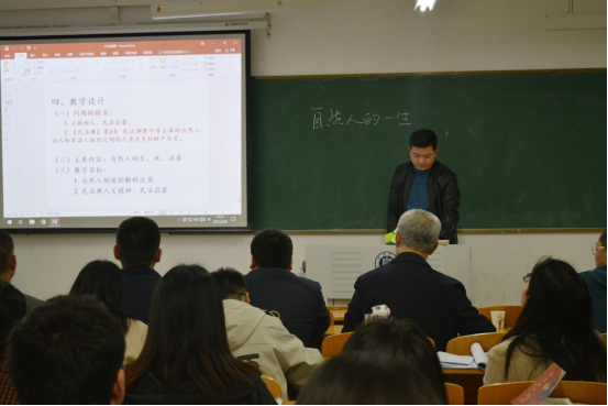 比赛过程中参赛选手们依次从自己专业特点上展示了自己的风采,体现出社会科学学院青年教师的风采。各位老师准备充分,讲解清晰,表现出扎实的教学功底。其中徐战辉老师所讲的是《民法典》中关于“自然人的一生”的部分,他从民法的体系入手辅以绘图的手段讲述了民法典中自然人一生中相关的民法权益。郝斌老师所讲的是近年来一项住房领域供给侧改革的重要结果——居住权。他结合当下实际讲述了居住权的产生和其产生的重大意义。其他选手的授课也精彩纷呈。