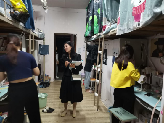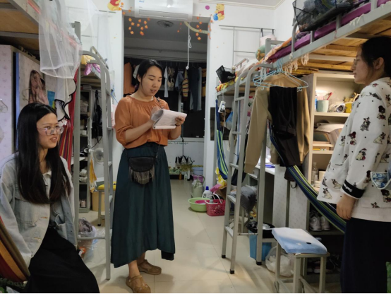 5月18日晚上,社会科学学院党总支副书记胡志国和辅导员刘雪、阚青、刘梦依、陈功林深入学生宿舍,开展走访活动。