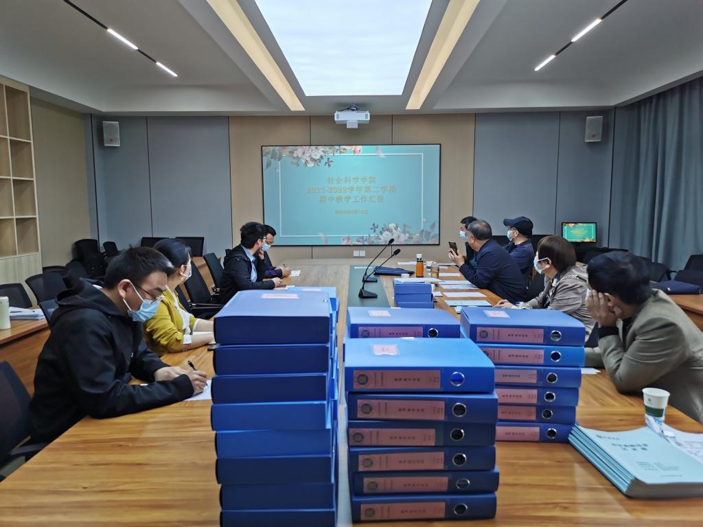 寇博文首先汇报了社会科学学院青年教师培养、教学素质提升、实践教学和学院两轮教学材料自查情况。随后,检查组专家就社会科学学院的各项教学材料进行了细致而全面地检查。